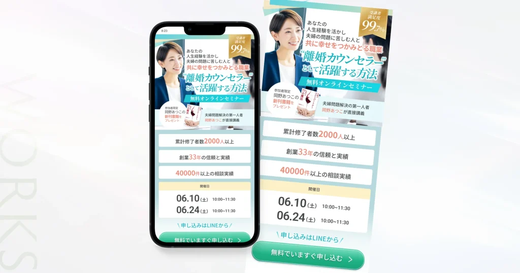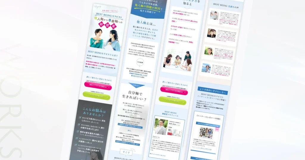 見た目の美しさだけで終わらせず、内容が伝わりやすく、安心して読み進められるLPにつながるようデザインしています。